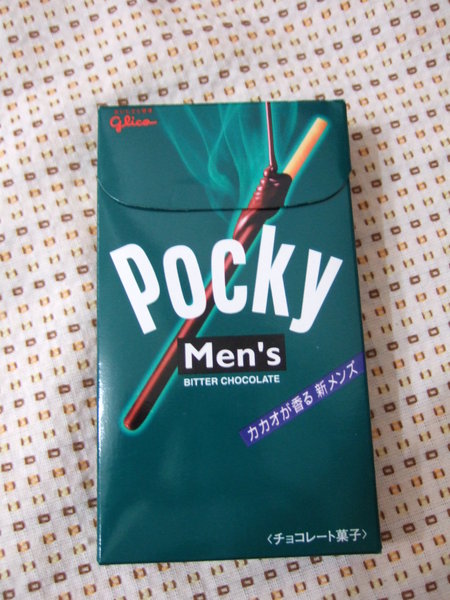 和普通的紅盒pocky不一樣 men's系列上面淋的巧克力醬是偏苦的巧克力 比較有大人的風味