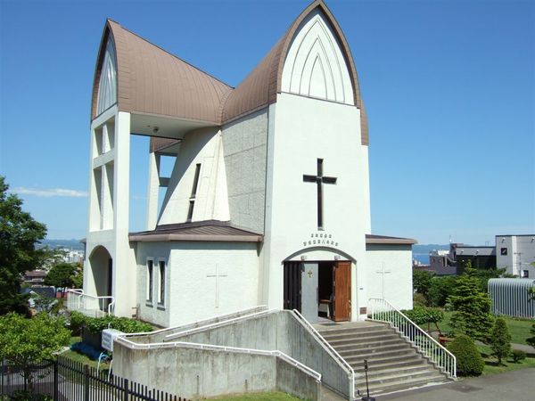 沿著大三坂往上爬 首先看到的是羅馬天主教教會