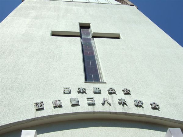這間教堂叫做函館聖ヨハネ教會 也是可以免費入內參觀 裡面的裝潢和外面一樣新潮