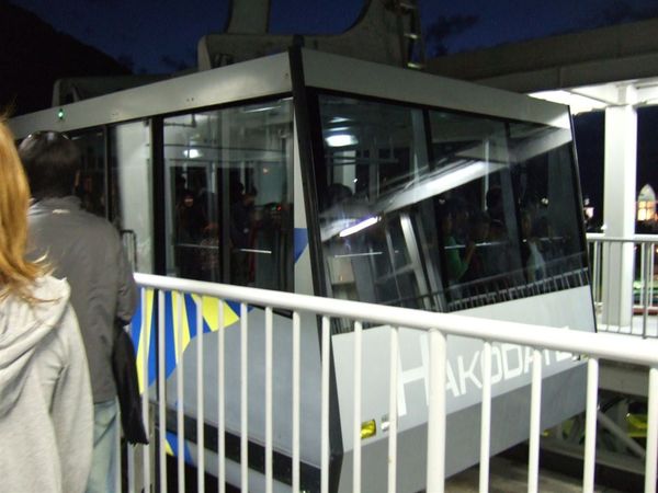 好不容易等到七點多 天色終於暗了下來 我們便步行至纜車站準備搭纜車上函館山看夜景啦
