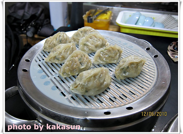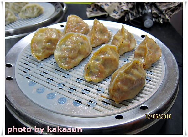 只是 他們的蒸籠比較特別 是金屬製的 蒸餃是平鋪在像是到過來放的蒸籠上