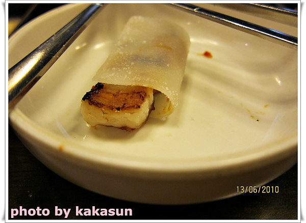 裡面有生菜(實在吃不出是什麼菜) 紫蘇葉(我愛這味 但Maureen不愛) 以及我痛恨的青椒