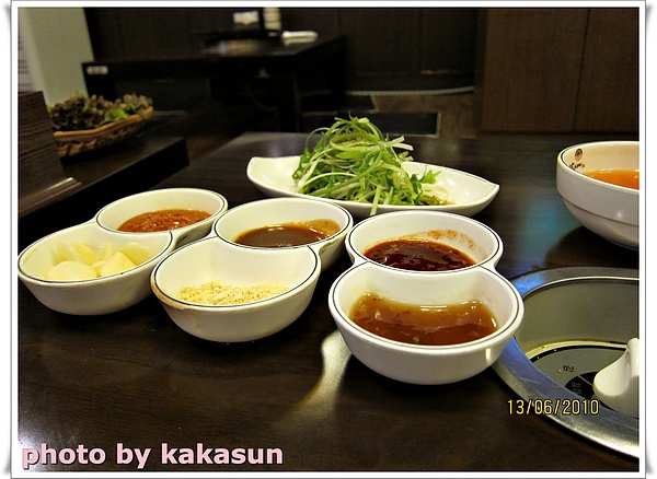 另外 還有不同的調味料增添烤五花肉的滋味 可以依照每人喜愛的方式在生菜上塗上調味料