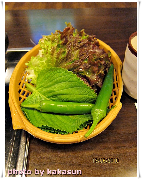 除了主菜外 還會送上一盆蔬菜 這盆蔬菜是用來包烤好的五花肉吃的