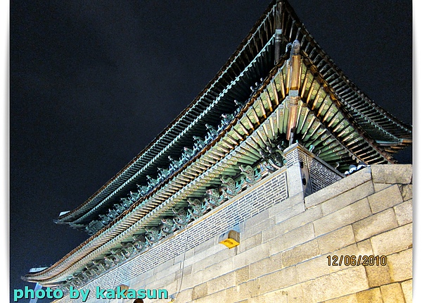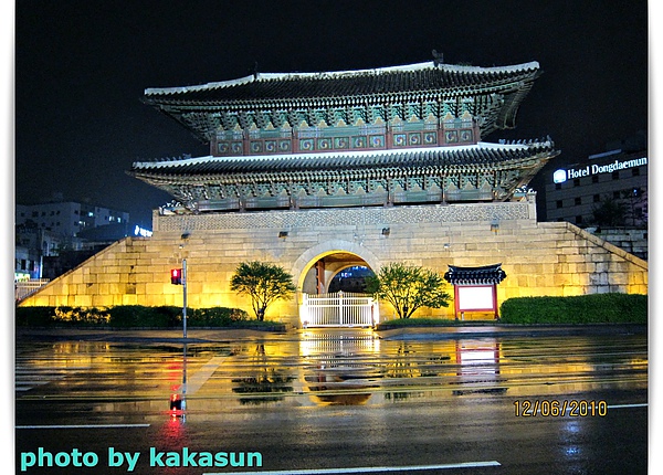 到了東大門站後 找到靠近東大門的出口 看到了夜晚的東大門 在燈光的照映下別有一番風情