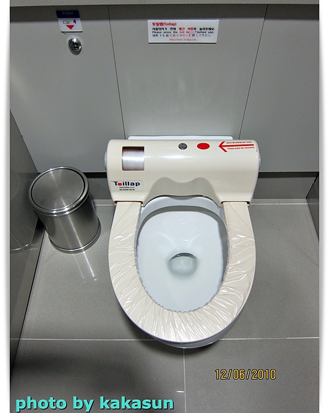 仁川機場內的馬桶上包著更替用的塑膠式坐墊紙 讓人覺得比較衛生
